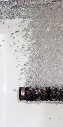 通过管道输气进行水体增氧的关键在于空气与水体接触的表面积!气泡越小,相对表面积越大,这就是为什么产生较小气泡的装置比产生较大气泡的装置其增氧能力更强。为了最大限度的提高系统的增氧能力,通风装置必须在花费最小能量的条件下产生大量细小的气泡。Aero-Tube™